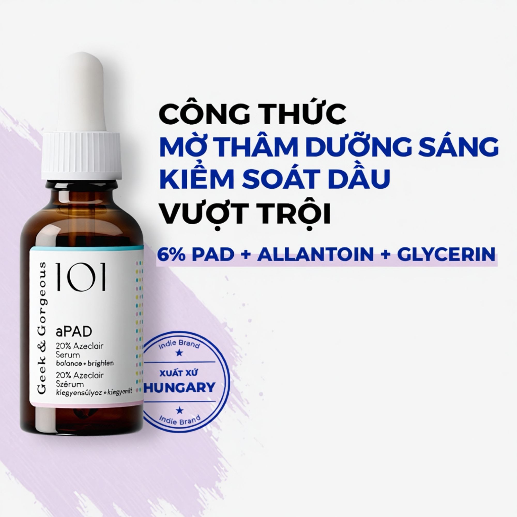 - Tinh chất aPAD với 20% Azeclair chứa 6% Potassium Azeloyl Diglycinate nguyên chất đem đến khả năng làm đều màu da vượt trội.